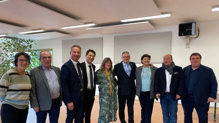 De nombreux élus ont fait le déplacement pour les vœux, ici autour d’Alain Scudellaro. Photo DDM - Ysabel